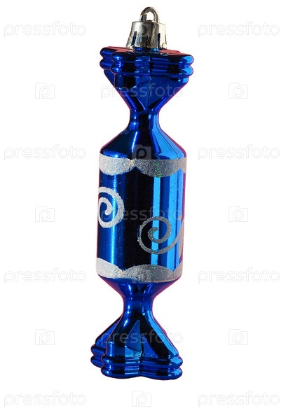 Шарик украшения рождества (конфеты) изолированный на белой предпосылке. Голубая елочная игрушка конфеты