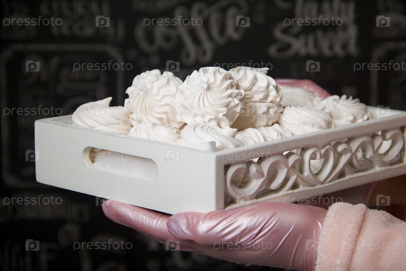 Зефир домашний. Женщина держит поднос с зефиром