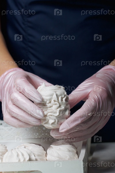 Зефир домашний. Домашний зефир. Женщина кладет готовый зефир на поднос