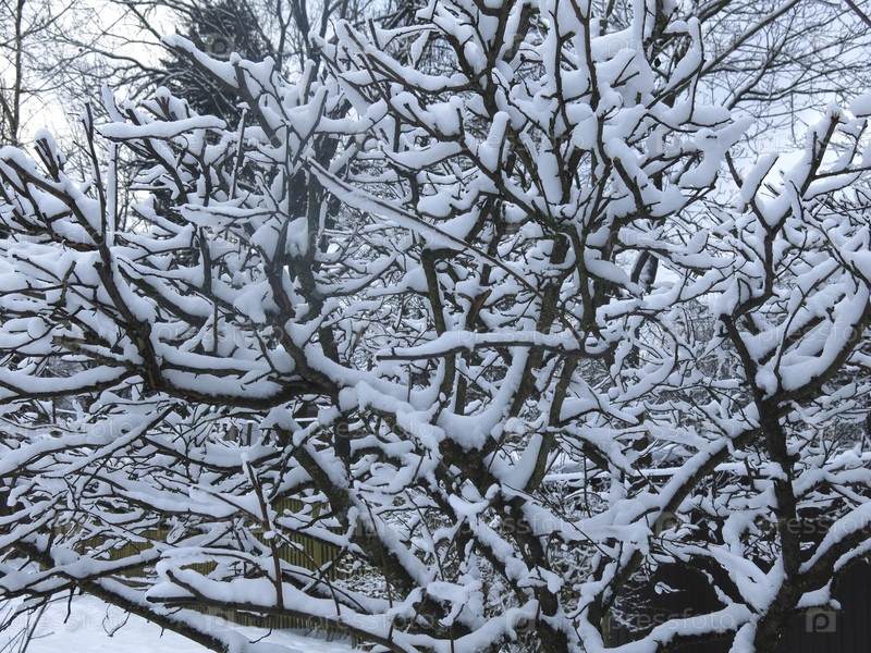 Резные кусты заснежены белым пушистым снегом