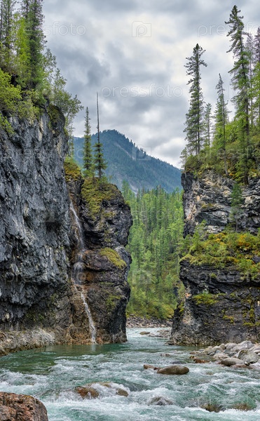 Узкий проход горной реки в зажатом каньоне