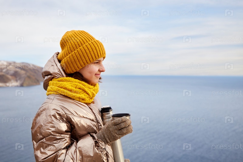 Молодая красивая девушка в путешествии восхищается красотой природы