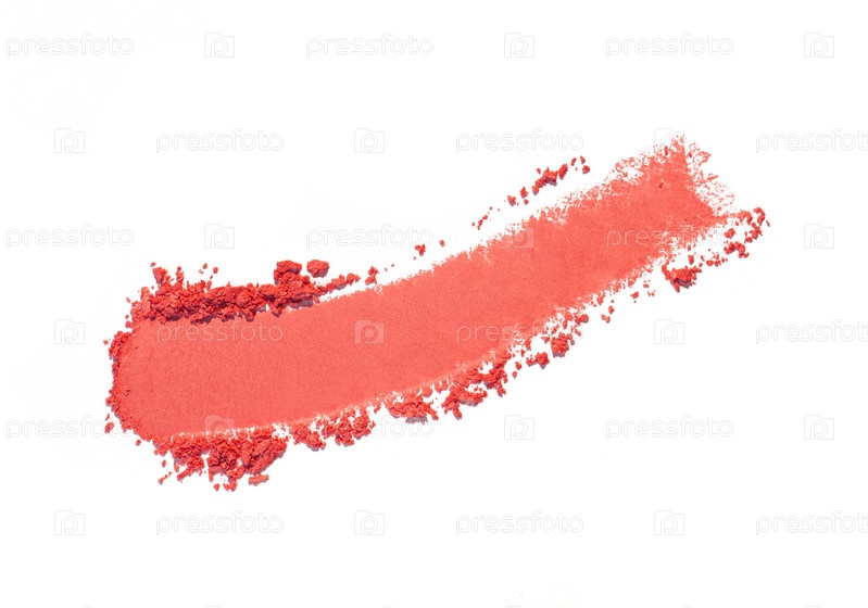 Косметические кораллово-оранжевые размазанные тени для век на белом фоне