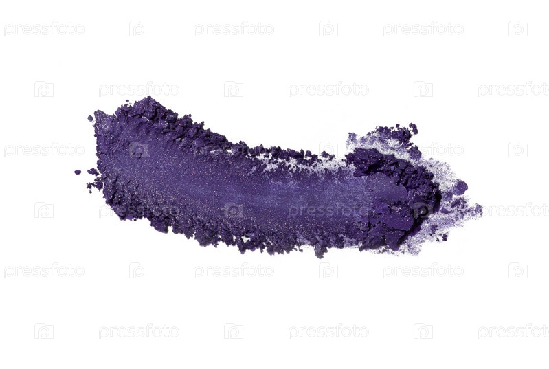 Косметические темно-фиолетовые размазанные тени для век на белом фоне