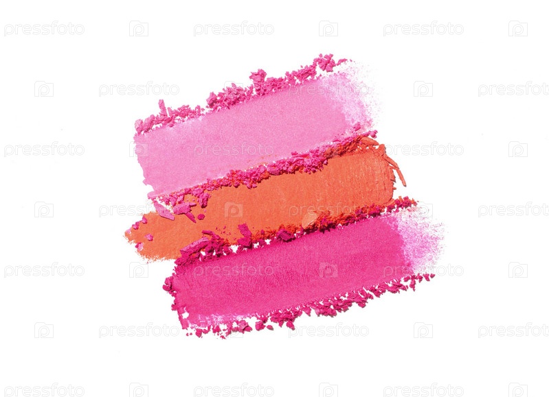 Косметические розовые, оранжевые, смазанные тени для век на белом фоне