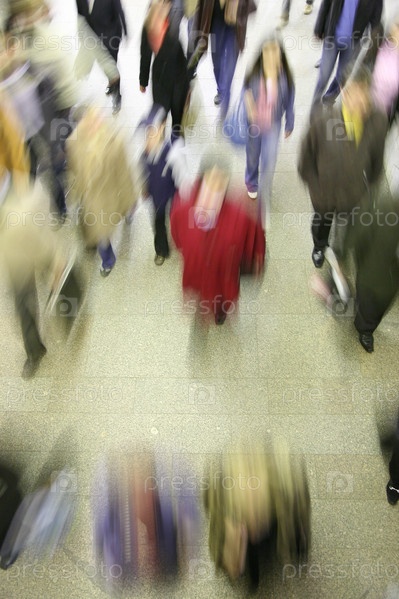 Красная женщина в движущейся толпе