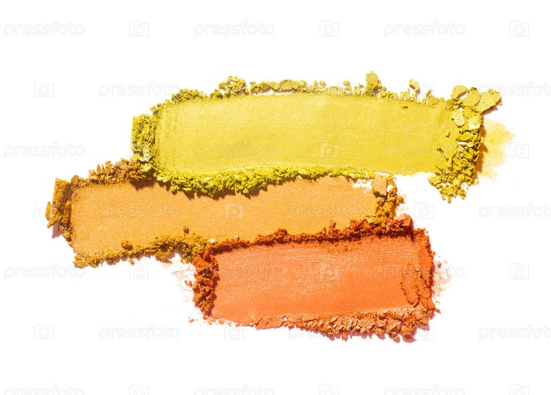 Косметический желто-оранжевый верблюжий смазанный образец теней для век изолирован на белом фоне