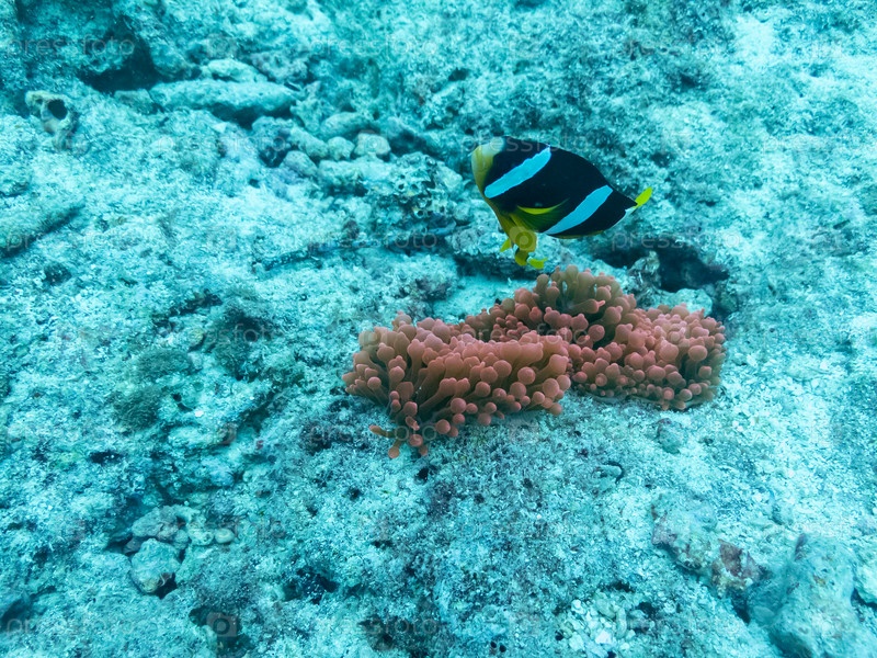 Рыба-клоун в актинии в глубинах Индийского океана, Мальдивы