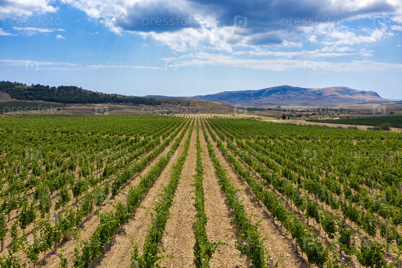 Вид с воздуха на горный виноградник в Крыму
