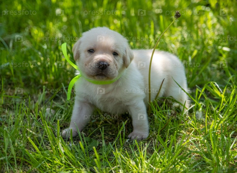 Щенок лабрадора в зеленой траве