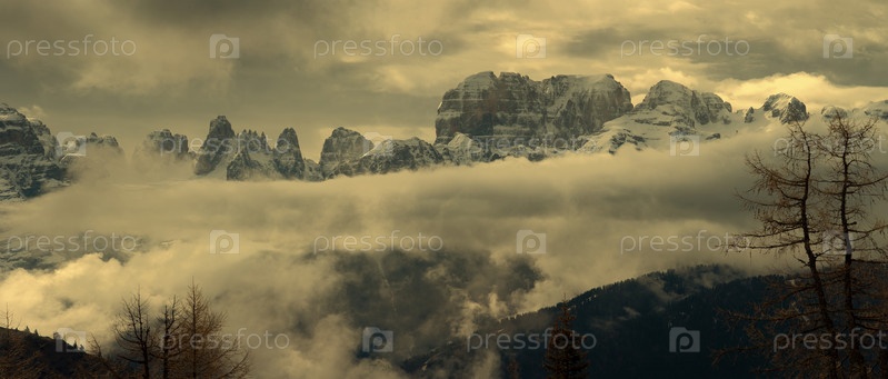 Заснеженные альпийские горы в облаках