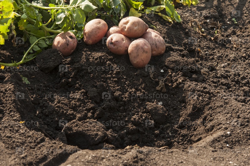 Уборка картофеля на земле на фоне поля