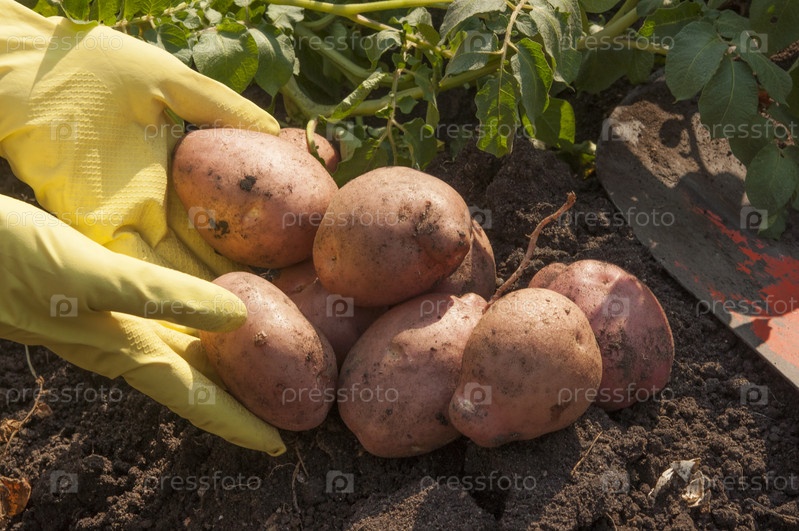 Уборка картофеля на земле на фоне поля
