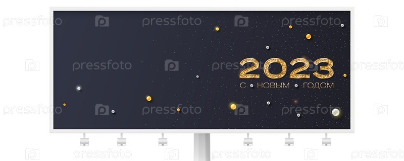 С Новым 2023 годом. Золотой номер на темном фоне. Рекламный щит с поздравительным баннером. Шаблон для поздравительной открытки