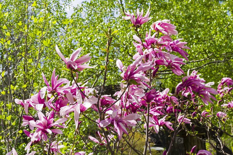 Цветущая лилиецветная магнолия (Magnolia liliiflora) сщкеф 'Сюзанна'. Аптекарский Огород (филиал ботанического сада МГУ), Москва