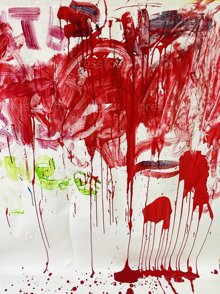 Стена белого цвета раскрашена краской красного и зеленого цвета
