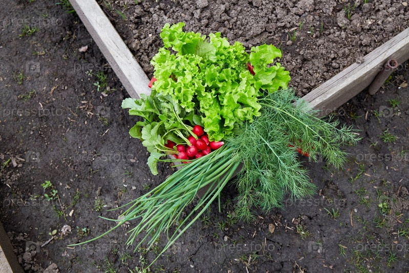 Первый урожай на домашнем огороде: салат, редис, лук, укроп