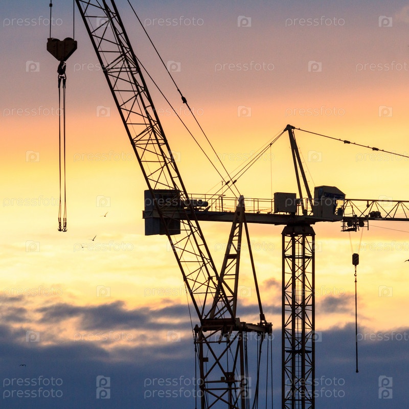 Промышленный фон с силуэтом строительного крана на закате