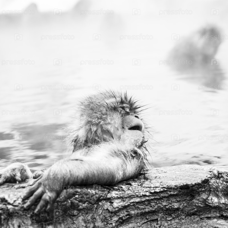 Черно-белый портрет снежной обезьяны (Macaca fuscata) из парка обезьян Джигокудани в Японии