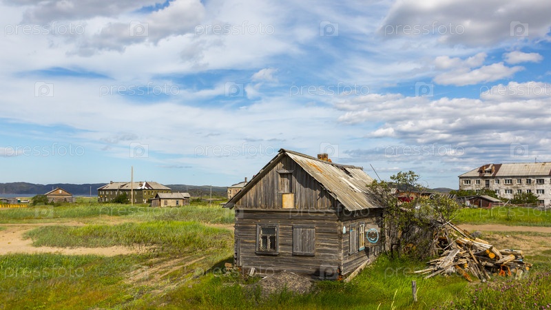 Улица в русской деревне Териберка, Мурманская область