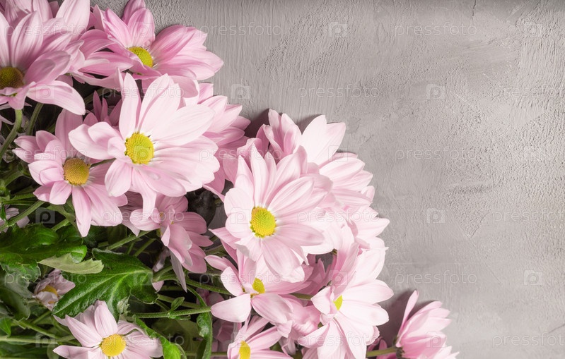 Букет розовых хризантем на бетонной поверхности. Копировать пространство