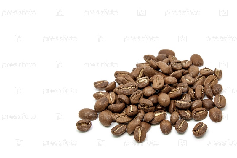 Ароматные зерна кофе на белом фоне