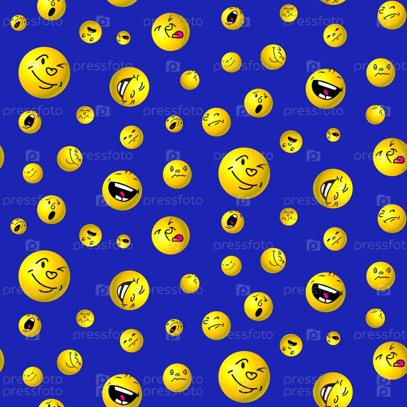 Бесшовный паттерн с желтыми шариками-смайликами на синем фоне