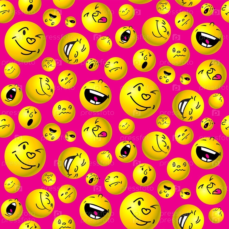 Бесшовный паттерн с желтыми шариками-смайликами на малиновом фоне