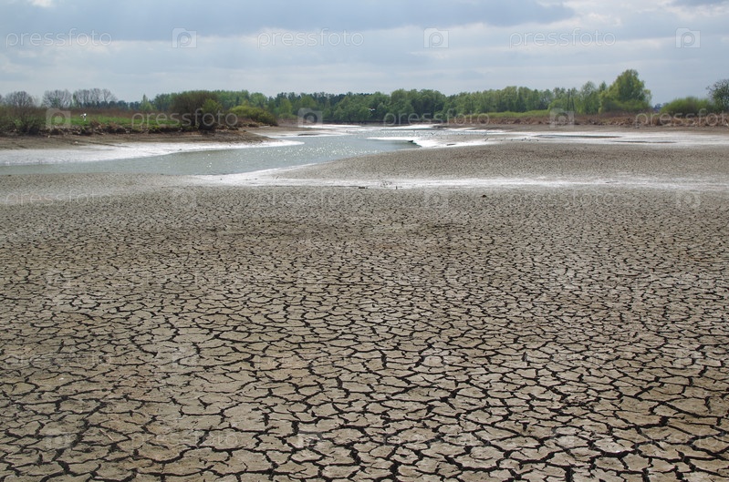 Засуха и мелкая река с треснувшей землей