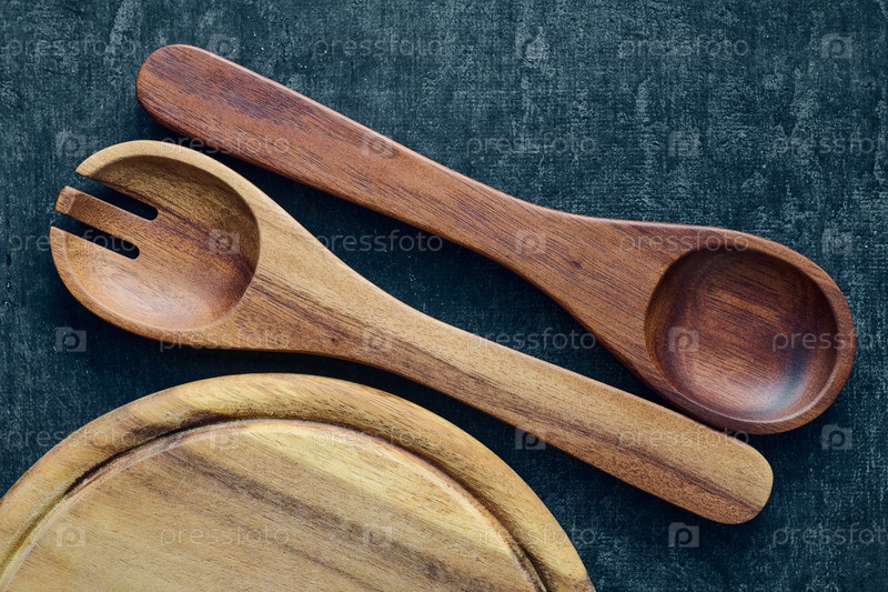 Кухонная утварь, деревянные ложки и разделочная доска, крупным планом