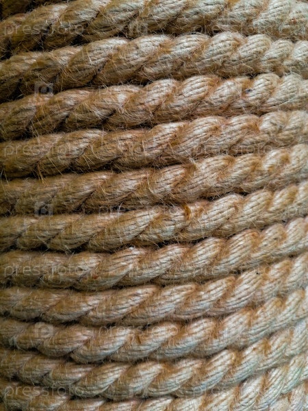 Макросъемка текстуры джутовой веревки, намотанной на шест