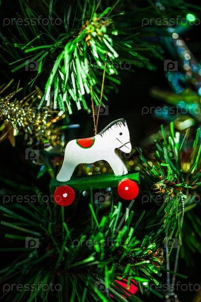 Новогодняя игрушка лошадка на елке. Новогоднее украшение на Рождество