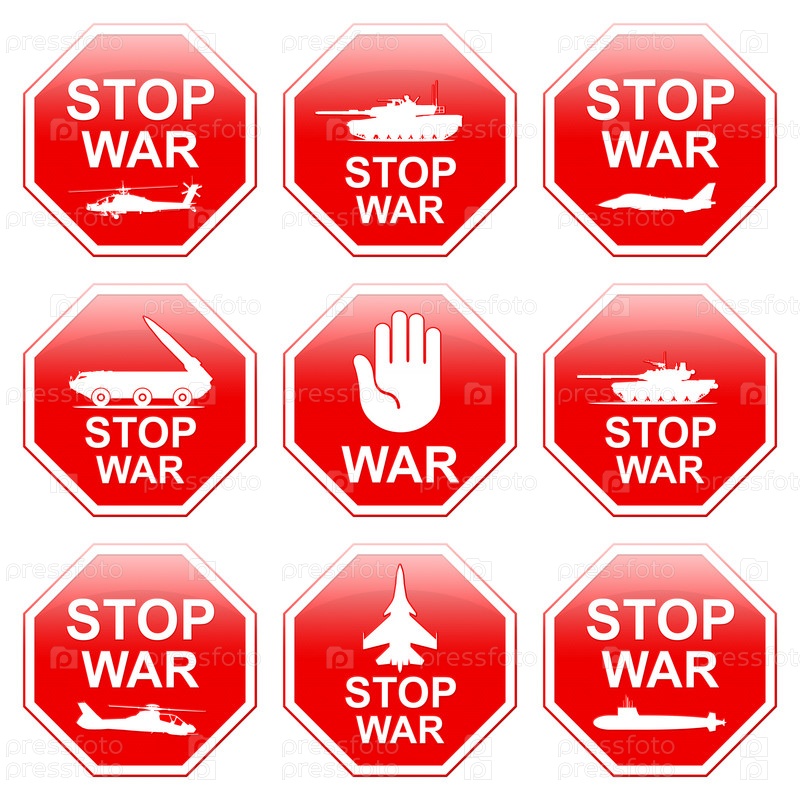 Девять знаков останавливают войну на белом фоне