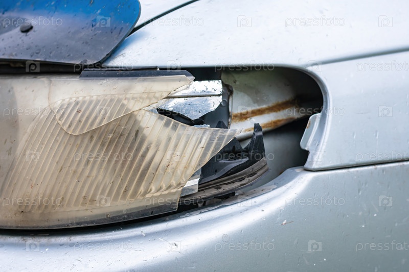 Сломанная фара автомобиля после незначительного столкновения из-за опасного вождения