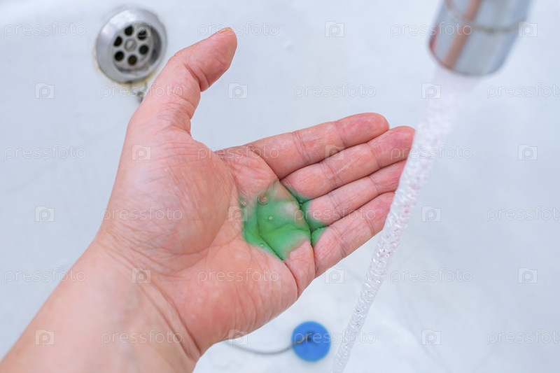 Мытье рук под проточной водой с жидким мылом или шампунем