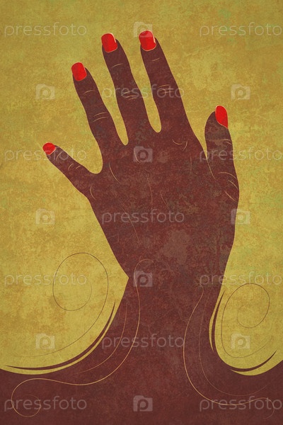 Силуэт руки с красными ногтями и завихрениями гранжа