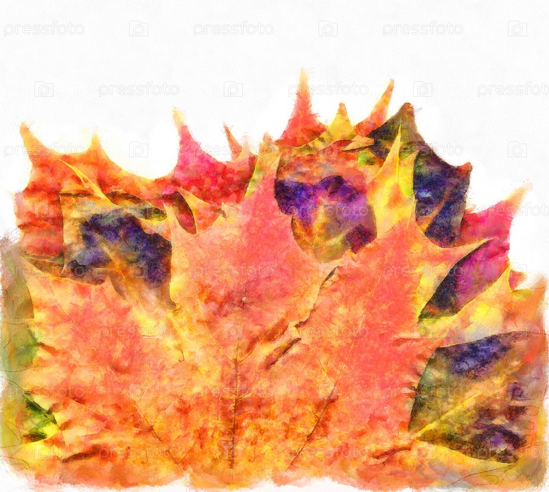 Букет осенних кленовых листьев цифровая акварель