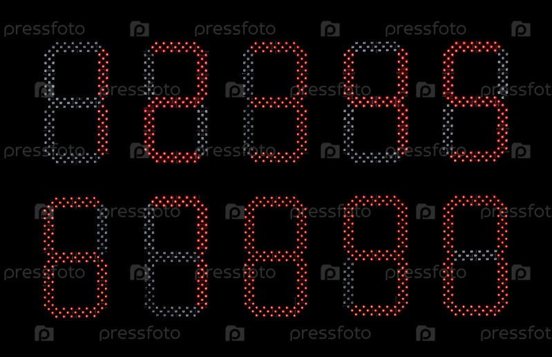 Набор красных цифровых чисел на черном фоне