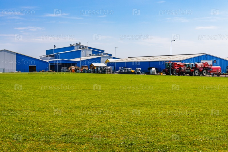 Складские помещения, тракторы и сельскохозяйственные постройки. Каунас, Литва, 15 августа 2022 г
