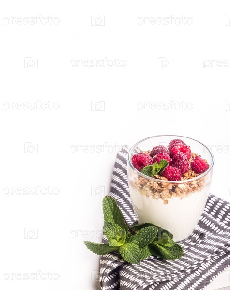 Домашний йогурт с малиной и гранолой копией пространства
