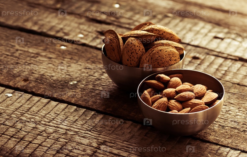 Чаши с очищенным миндалем