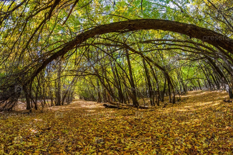 Грунтовая дорога проходит через осенний лес