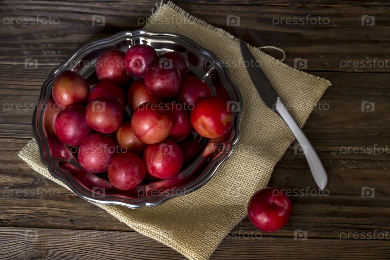 Спелые сливы в тарелке крупным планом