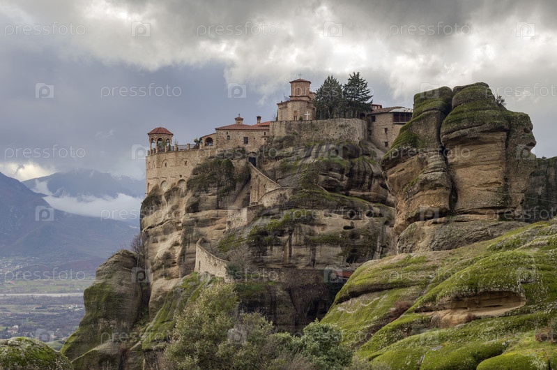 Православные монастыри Метеоры (Греция) на скалах, окутанных туманом