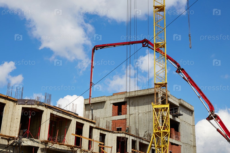 Кран и другое оборудование на строительной площадке жилого дома