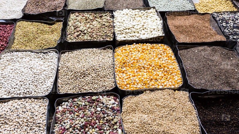 Органические сушеные бобы, кукуруза, фасоль мунг, нут на рынке фермеров