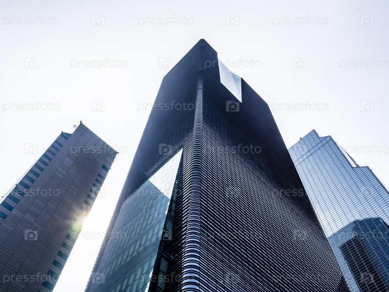 Низкий угол обзора современных небоскребов в Сеуле, Южная Корея. Перспектива снизу
