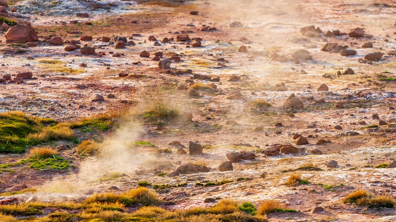 Дымящиеся, серные, активные фумаролы возле Паужетской ГеоЭС, Камчатка, Россия