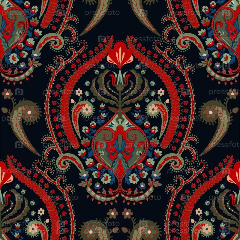 Красочный индийский бесшовный орнамент. Вертикальные обои индонезийского батика