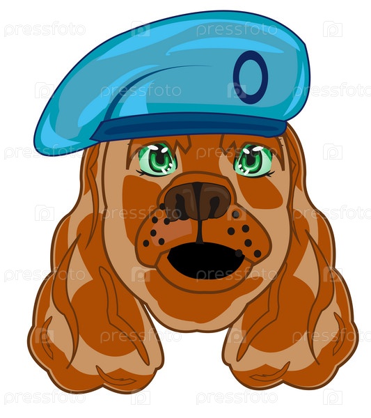 Нарисованная собака породы спаниель в модном голубом берете